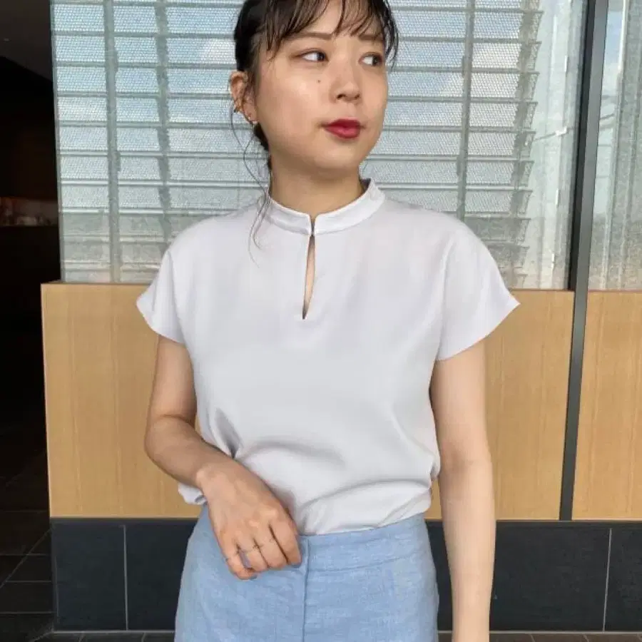 오구라 유이 착용 꽃무늬 반팔 블라우스 화이트