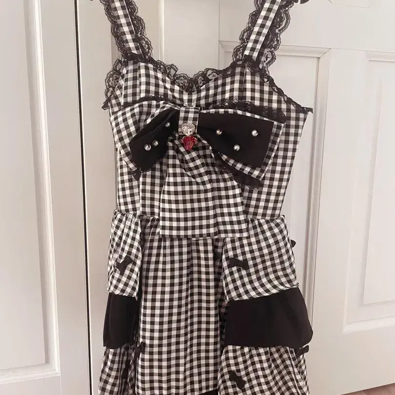 앙크루즈 점퍼 스커트 깅엄 체크 딸기 지뢰 블랙