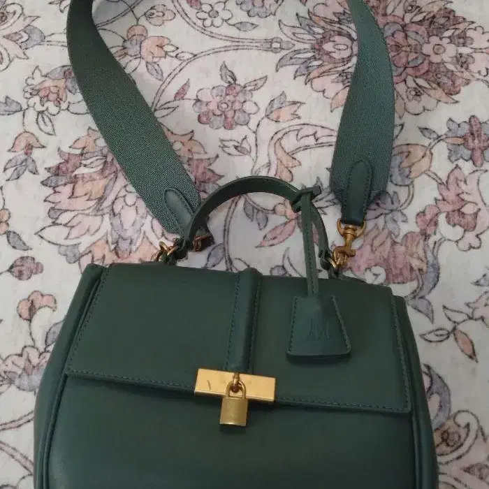 Mila owen 미라 오웬 와이드 숄더 패드 락 핸드백 그린