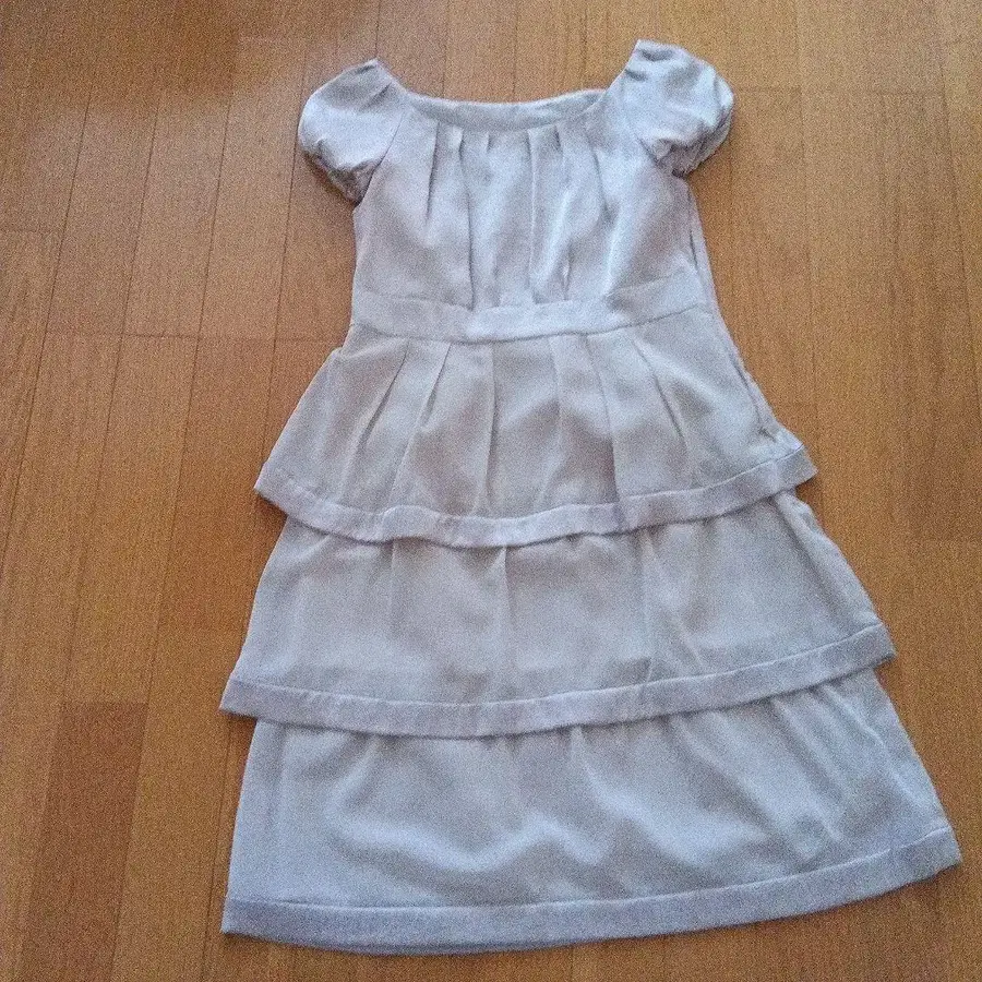 스트로베리 필드 베이지 티어드 반팔 원피스