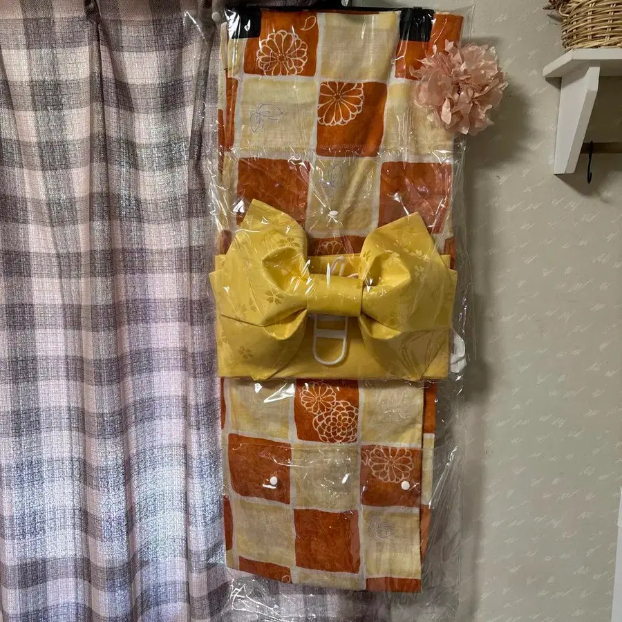 오렌지 계열의 러블리 스타일 유카타와 오비 세트입니다. 한 번만 착용했습니다. 일본 나막신은 포함되어 있지 않습니다. 여성용 M 사이즈입니다. 머리 장식은 유카타와 별도로 구매한 것입니다. 여름 축제에 어떠신가요?