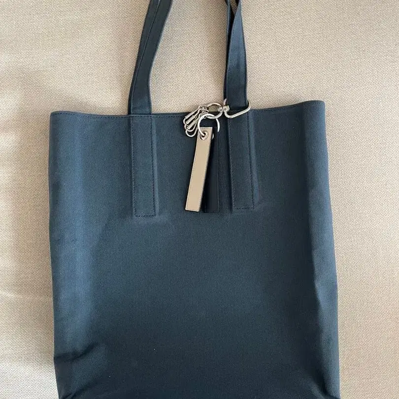 소이의 토트백입니다. 색상: 블루 그레이 사이즈: 세로 43, 가로 36, 바닥 13cm 정도입니다. 심플한 토트백이지만, 가죽 안 포켓(천연 가죽인지는 미확인)이 달려있거나, 안감이 덧대어져 있거나, 안에 심지가 덧대어져 있는 등 튼튼하게 만들어진 제품입니다. 캐주얼하면서도 세로로 길어 조금 더 깔끔해 보이며, 또한 빅 사이즈로 패션적으로도 멋지게 보이기 쉽다고 생각합니다. 본체가 2만 엔 정도, 부속 참 카라비너가 7~8천 엔 정도였습니다. 원래 약간 워싱된 듯한 질감이 있는 원단이지만, 저는 1~2회밖에 사용하지 않았기 때문에 깨끗한 상태입니다.