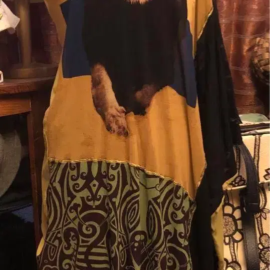 사자 프린트가 특징적인 비대칭 파워네트 상의입니다. - 디자인: 사자 프린트 - 색상: 베이지, 노랑, 블랙, 그린, 브라운 - 패턴: 추상적인 무늬 - 스타일: 캐주얼, 넉넉한 실루엣 S 사이즈 표기이지만 가슴 너비는 넉넉합니다. 어깨 너비 55cm, 기장 84cm 정도입니다. 스커트, 팬츠, 원피스 등에 코디하기 쉬울 것 같습니다. 방문해 주셔서 감사합니다.