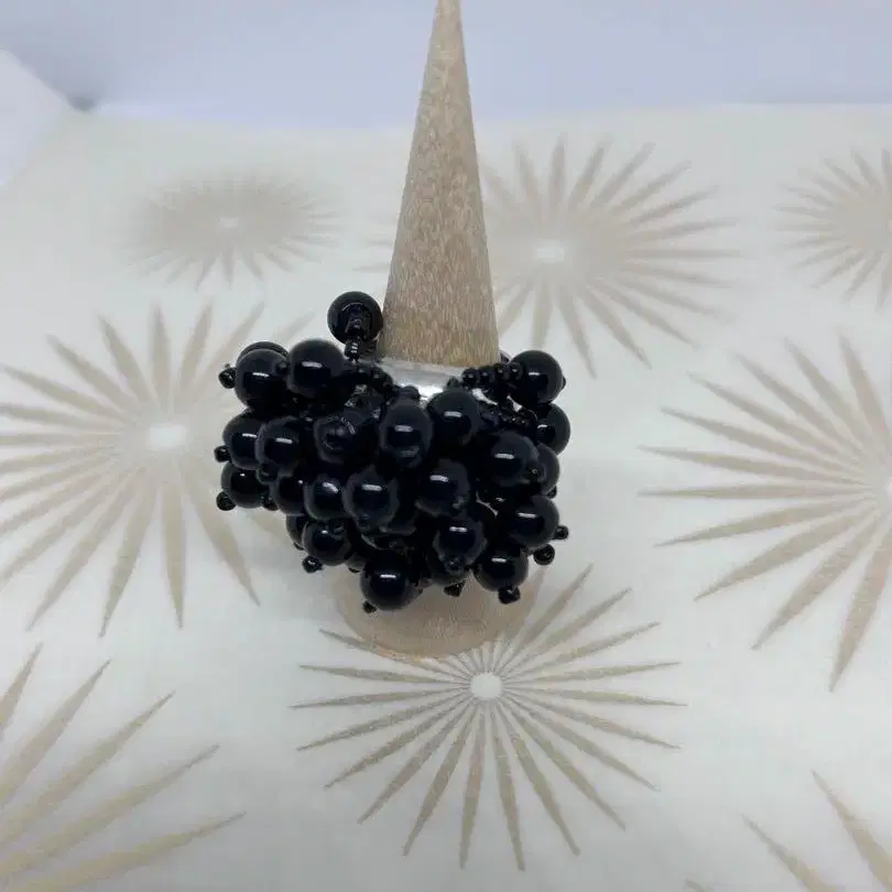 블랙 비즈가 특징적인 반지. - 색상: 블랙 - 브랜드명: SALVIATI - 사이즈: 10~11호 기타 사이즈감은 사진을 참고하시기 바랍니다. 방문해 주셔서 감사합니다. 눈에 띄는 흠집이나 얼룩은 없지만, 어디까지나 판매자의 주관적인 견해입니다. 기사용이며, 오랫동안 아마추어 보관되어 왔다는 점을 양해 부탁드립니다.