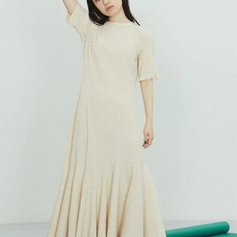 FURFUR 퍼퍼 깅엄 체크 저지 원피스 보타이