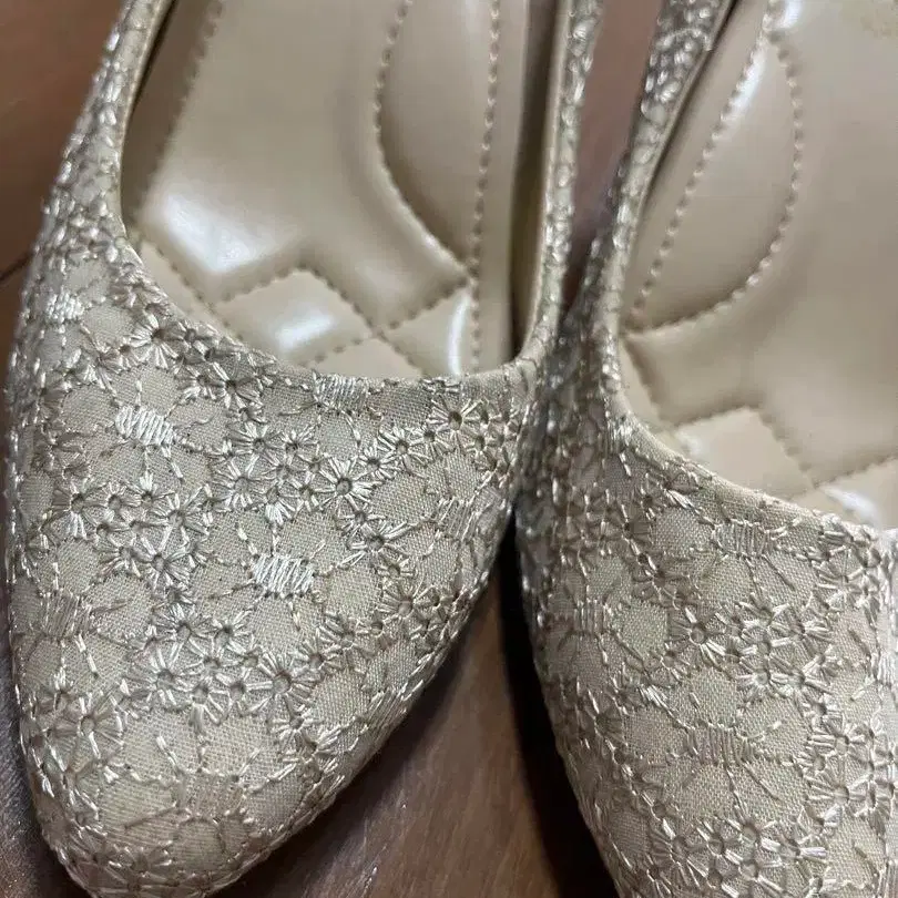• 다이애나 DIANA 스웨이드 펌프스 골드 컬러 골드 자수 꽃무늬 22cm