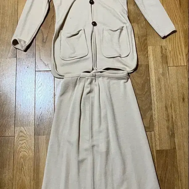 베이지 니트 소재의 포켓이 있는 셋업. - 브랜드: French Guild - 컬러: 베이지 - 스타일: 셋업 - 소재: 니트 - 디자인: 자켓 포켓 포함 - 타입: 스커트와 자켓 세트 방문해 주셔서 감사합니다.