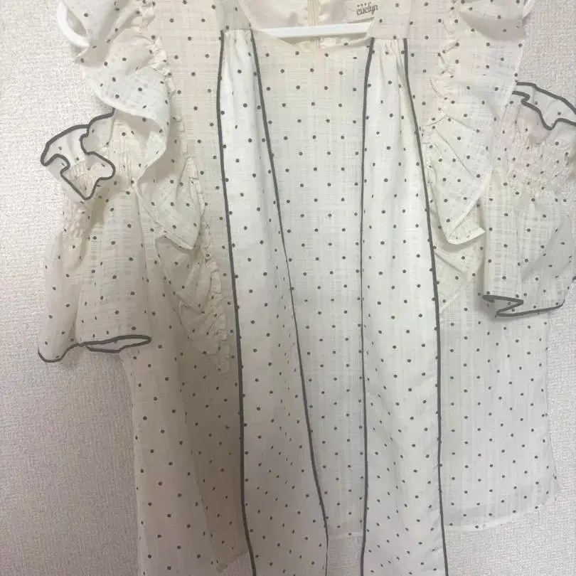 evelyn 도트 어깨가 드러난 보타이 블라우스