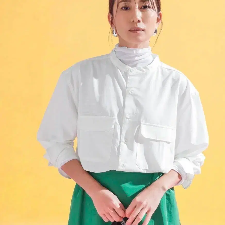 히가시하라 아키 프로듀스 화이트 버튼 셔츠 긴팔 스탠드 카라