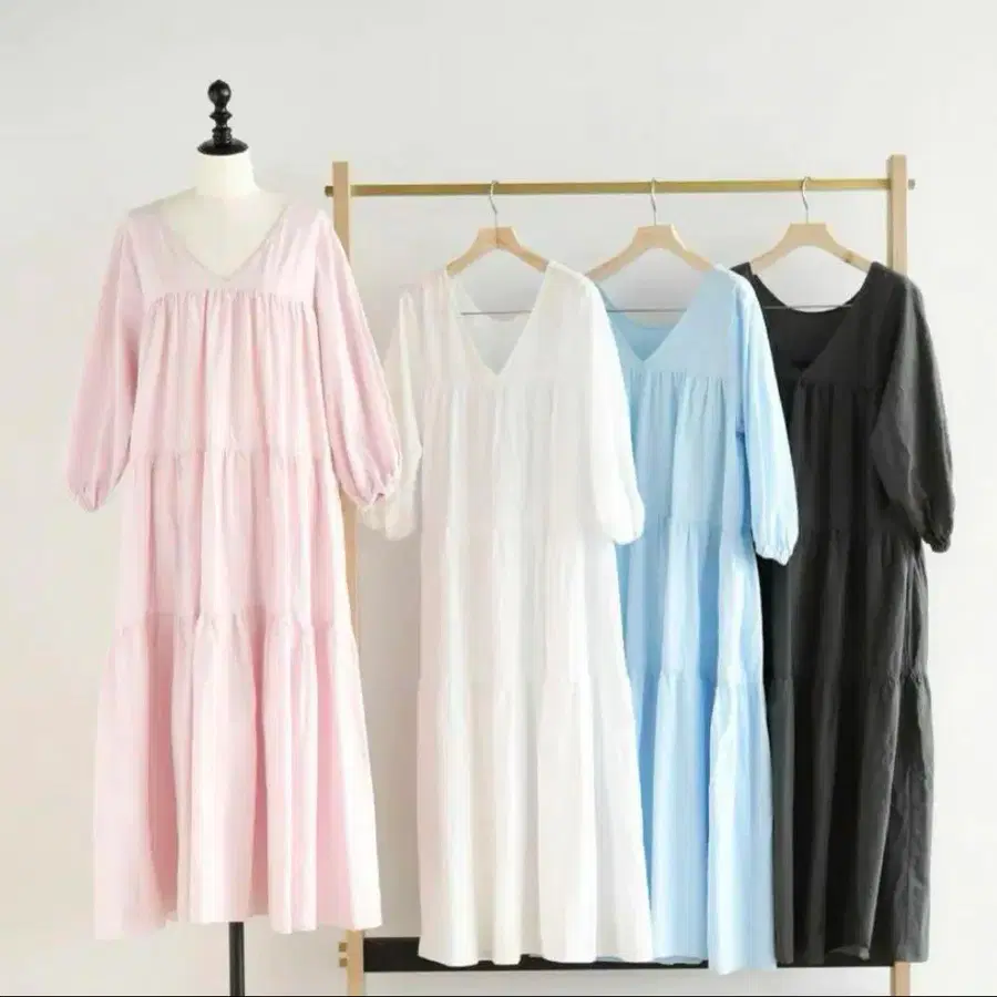 코튼 100% 티어드 긴팔 원피스 S 사이즈 핑크