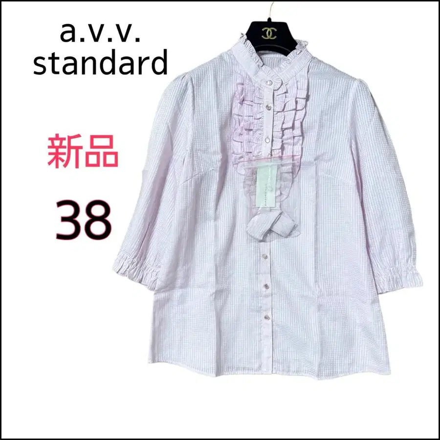 새상품 a.v.v. standard 리본 타이 프릴 블라우스 38