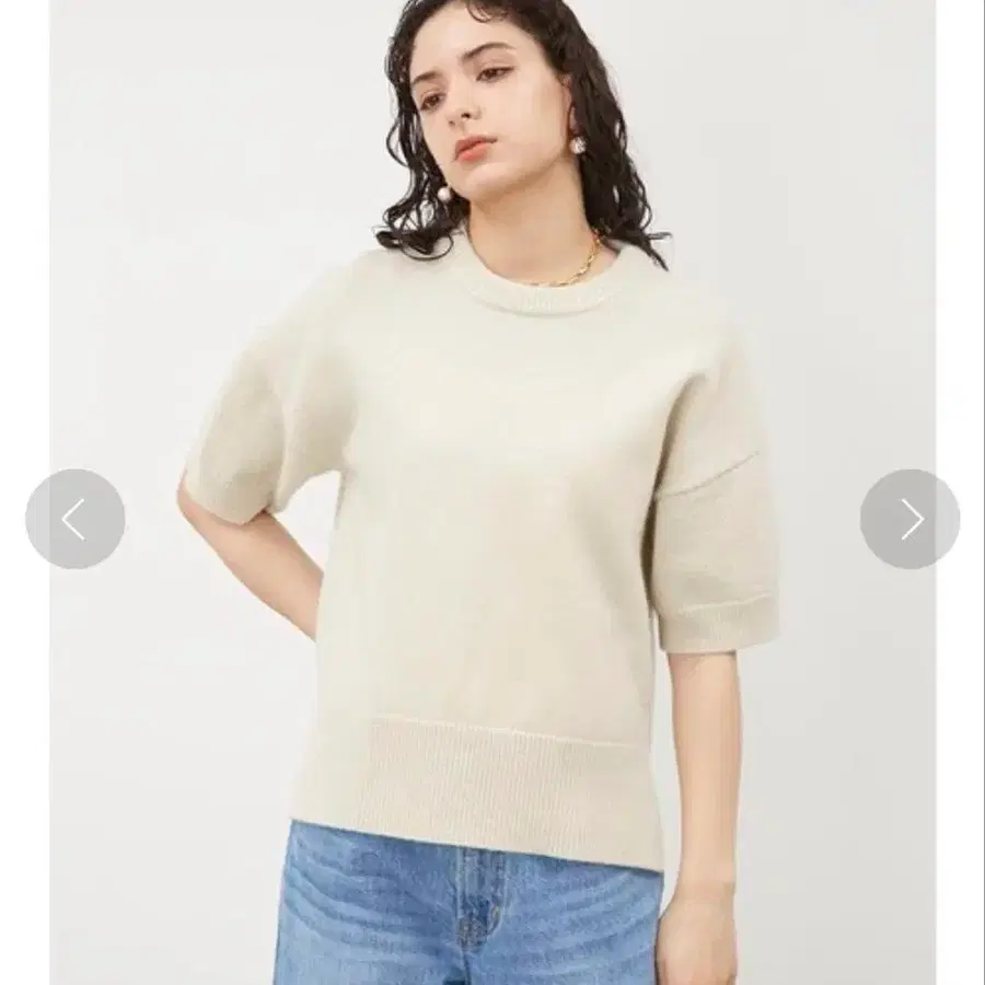 미라 오웬 미들 게이지 하프 슬리브 니트 풀오버