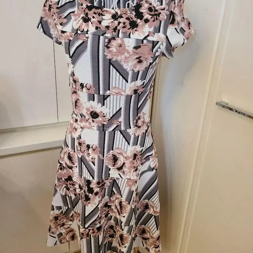 아르모와르 카프리스 프랑스제 꽃무늬 스트라이프 반팔 무릎 기장 원피스