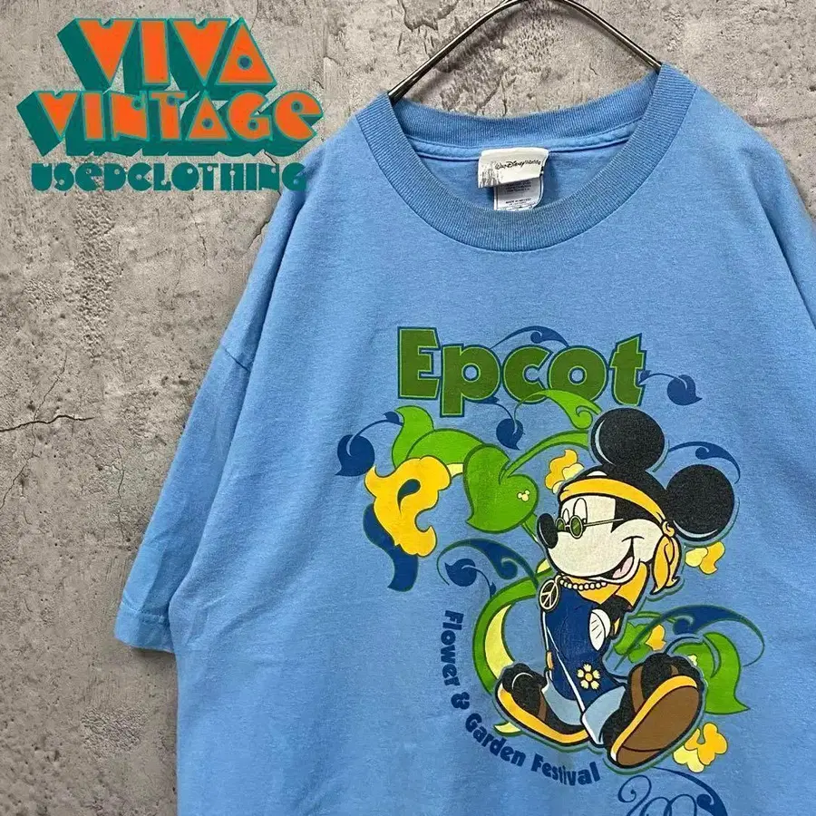 레어 멕시코제 [구제 의류] 디즈니 미키 티셔츠 블루 남성용 XL