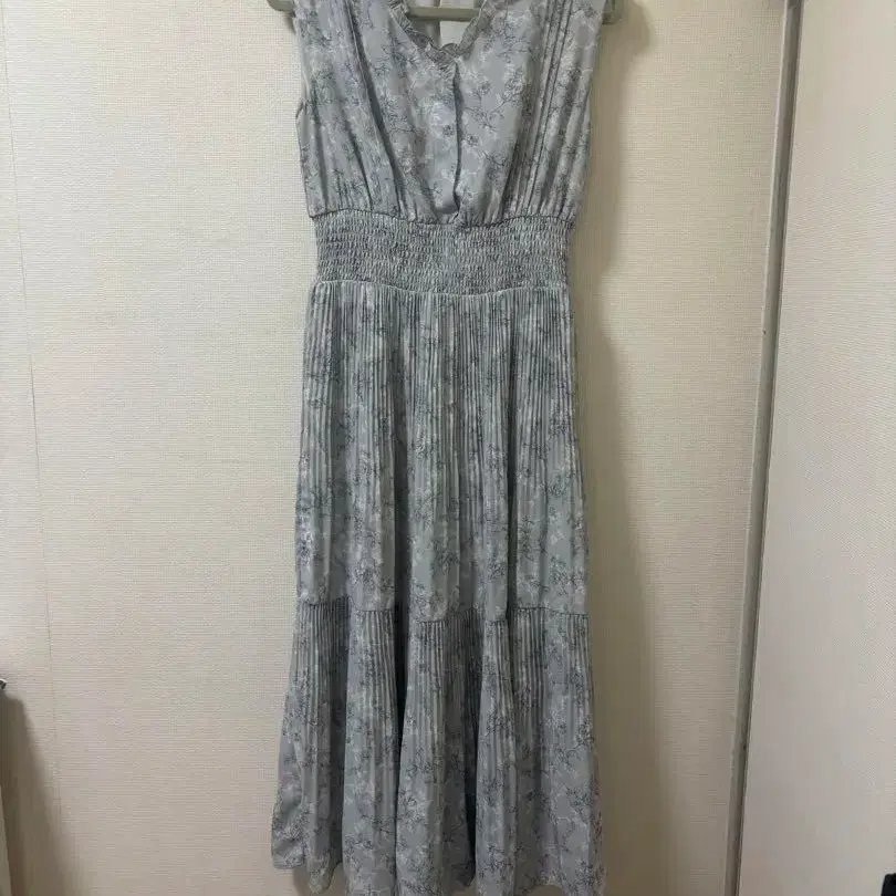 • 파란 꽃무늬 슬리브리스 롱 원피스