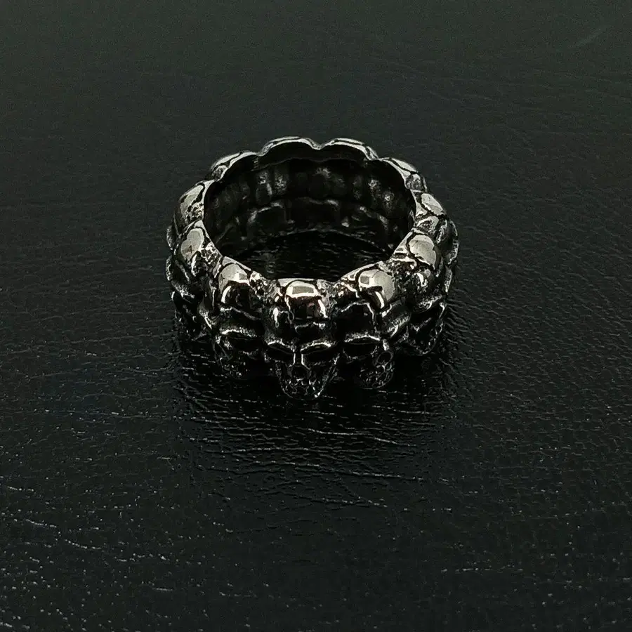 • 회전식 레더 앤 트레져 스컬 반지 약 18호 실버 925