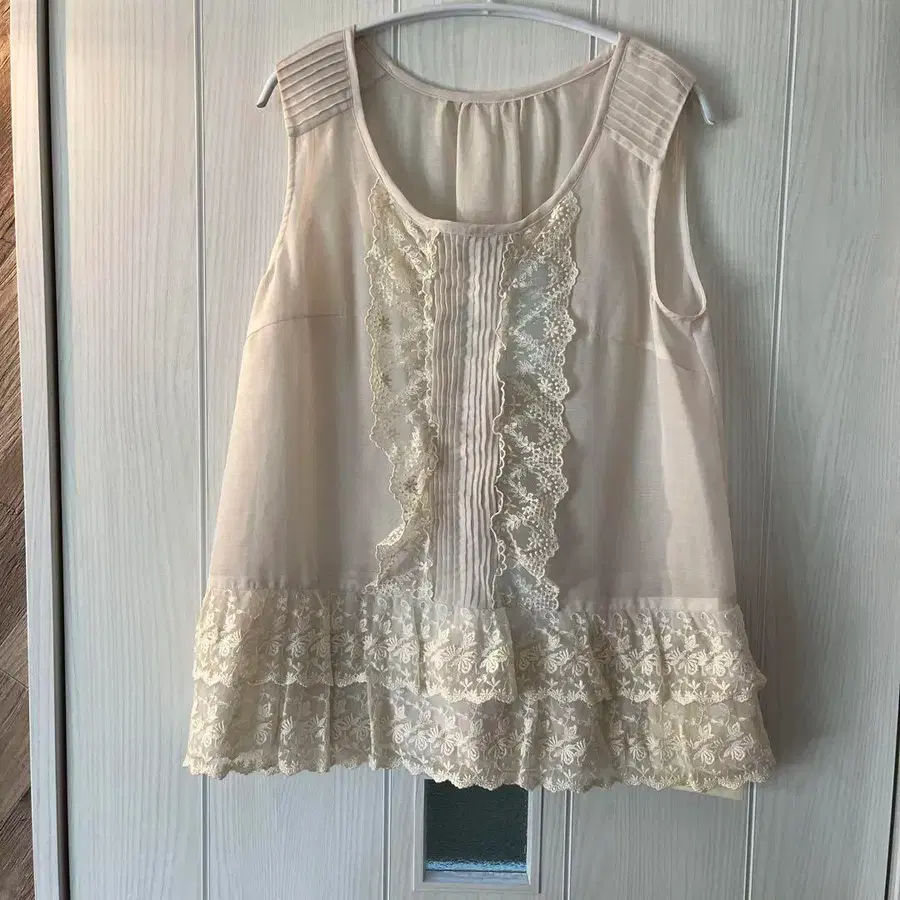 tiara 미사용 택 포함 레이스 아이보리 슬리브리스 탑 멜로즈