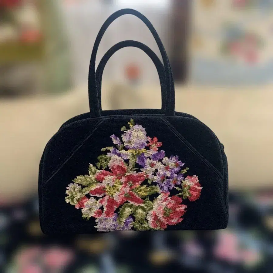 • FEILER 셔닐 직조 꽃무늬 플라워 핸드백 미니 보스턴
