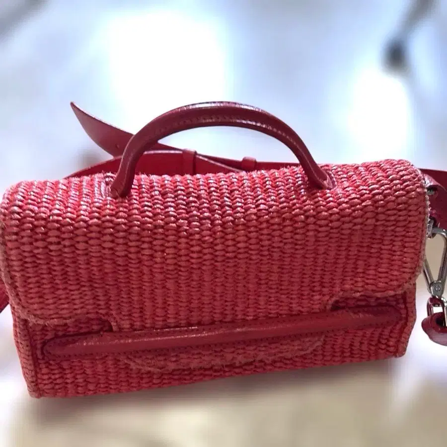 • 현행 컨디션 최상 지미추 드로우 스트링 토트 백 라피아 A4 수납 가능