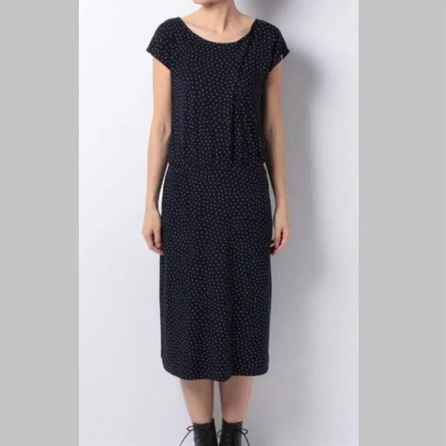 에네스베의 스테디셀러, 도트 프린트의 레이온 저지 소재 원피스. 레이온 스트레치 소재의 부드러운 촉감이 착용감이 좋은 아이템입니다. 프렌치 슬리브, 여성스러운 U 네크라인 디자인. 허리 부분은 밴딩 처리로メリハリ 있는 실루엣을 연출합니다.