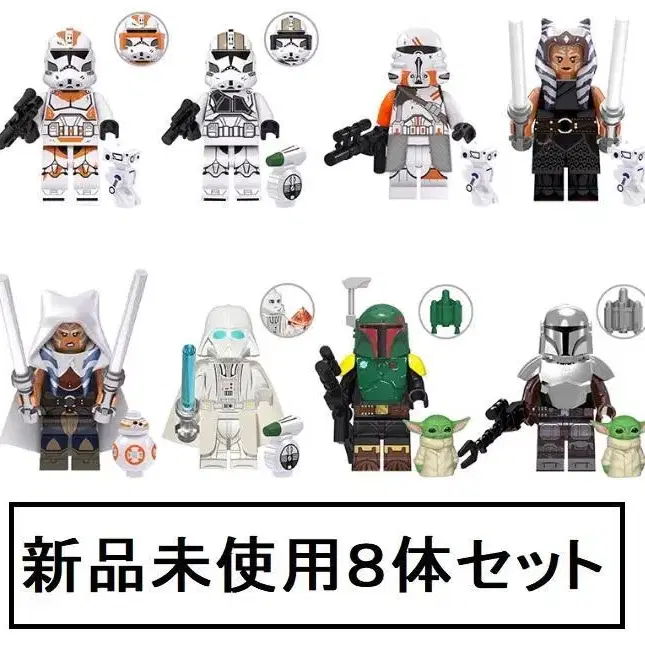 미개봉 새상품입니다. 레고로 바로 놀 수 있습니다. 사진에 있는 모든 것이 부속물로 포함되어 있습니다. 2개 이상 구매 시 가격 인하 가능, 세트 판매만 가능합니다. ※최저가 배송 방법으로 발송해 드립니다. 상자 없이, 조립하지 않은 상태로 피규어별로 봉지에 담아 발송하므로 양해 부탁드립니다. 생일 선물로 최적입니다! #차치레고 스타 워즈 미니 피규어 인형 아소카 바바 페트 클론 트루퍼