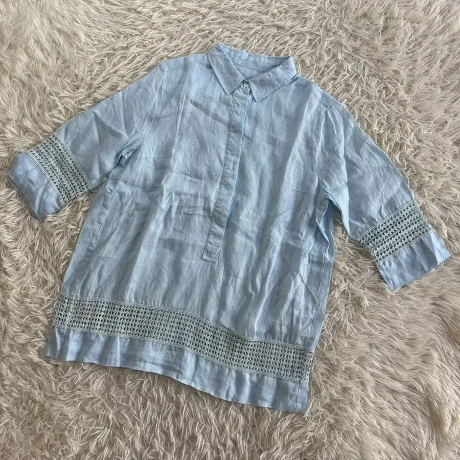 크로쉐풍 레이스 장식이 멋스러운 셔츠입니다.