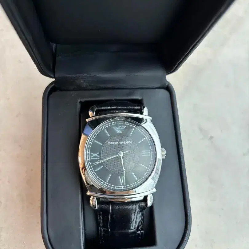 EMPORIO ARMANI 아날로그 시계 블랙 가죽