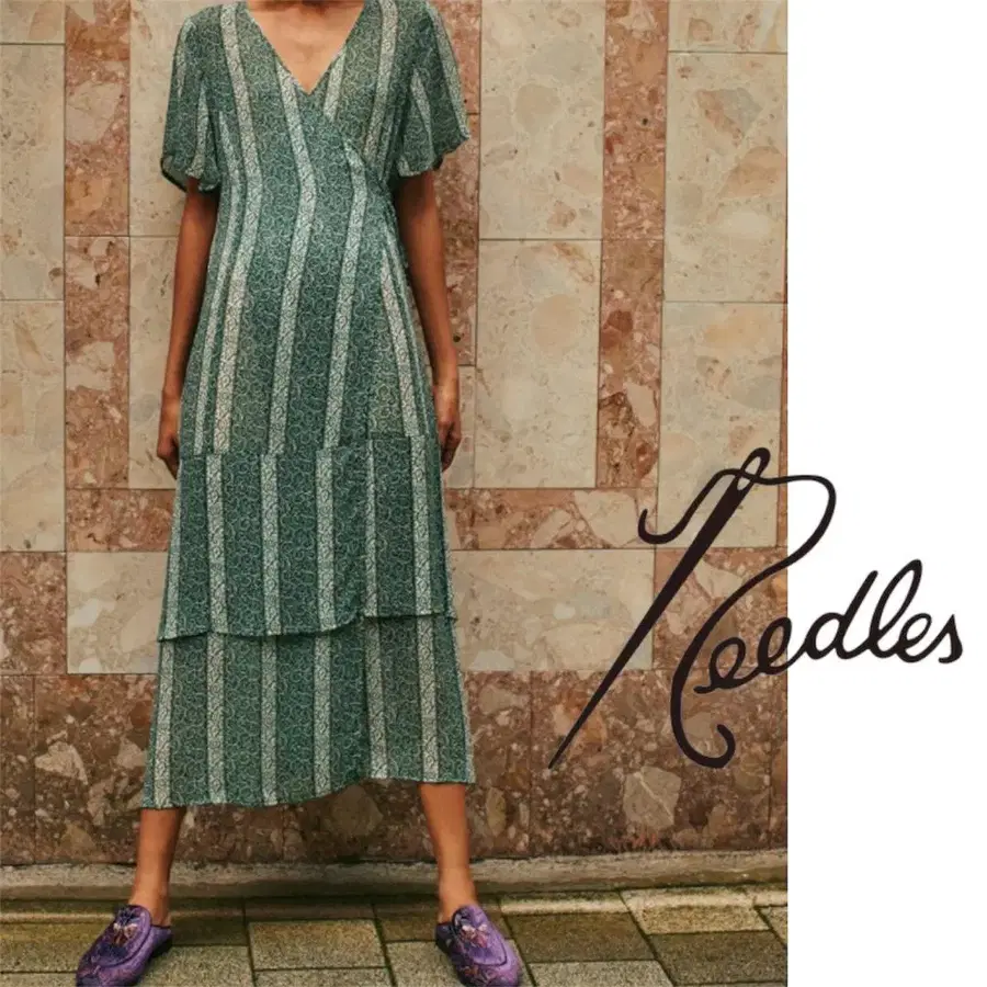 Noodles 니들스 그린 스트라이프 랩 드레스 원피스 롱 가디건