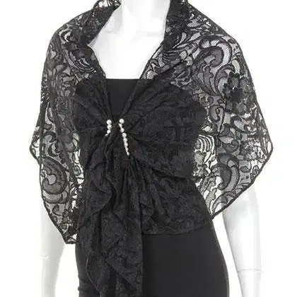 ROYALPARTY 블랙 전체 레이스 숄 스톨 로얄 파티 블랙 펄