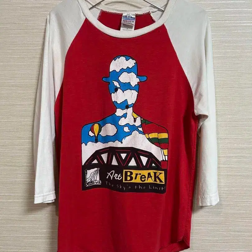 90s 래글런 슬리브 티셔츠 7부 소매 빈티지 아트 티셔츠