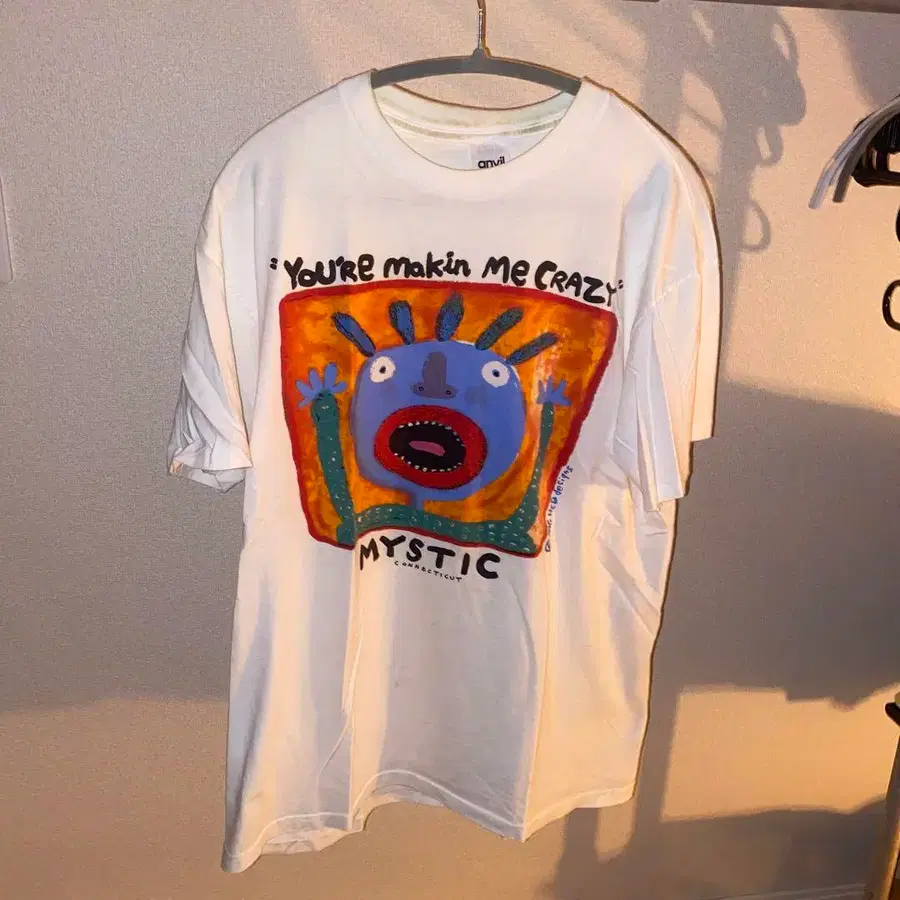 유니크한 그래픽이 특징인 화이트 티셔츠, 사이즈 XL. - 디자인: 'YOU'RE MAKIN ME CRAZY' 그래픽 - 브랜드: anvil - 사이즈: XL - 컬러: 화이트 방문해 주셔서 감사합니다.
