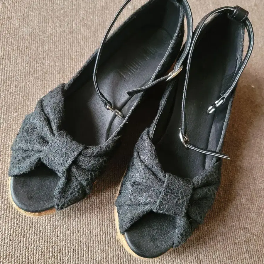 핑크하우스 블랙 리본 샌들