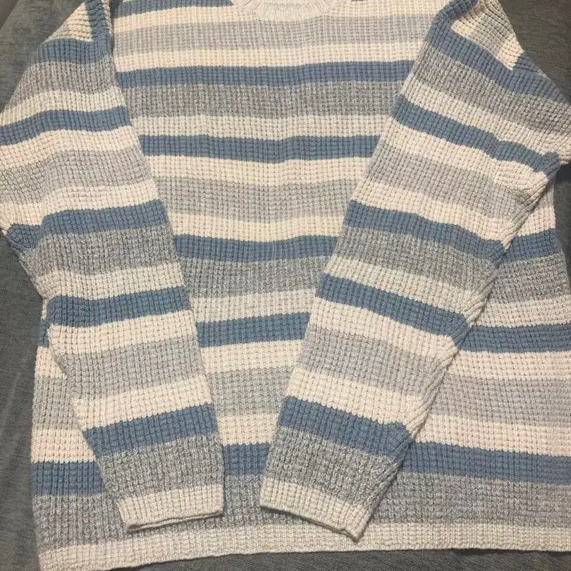 M 사이즈 파랑 오렌지 스트라이프 니트 스웨터