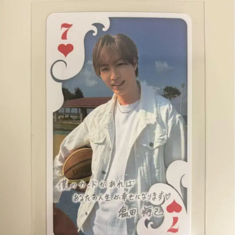 SHOW-WA 시오타 마사미 SMTC 카드 '우리들의 휘파람' 발매 이벤트 특전회에서 본인이 직접 건네준 카드놀이 카드(하트 7)입니다. 받자마자 슬리브에 넣어 보관하고 있었지만, 한 번 다른 사람의 손에 닿은 상품이므로 양해 부탁드립니다. 즉시 구매⭕️ 가격 인하 협상은 삼가 주시기 바랍니다.