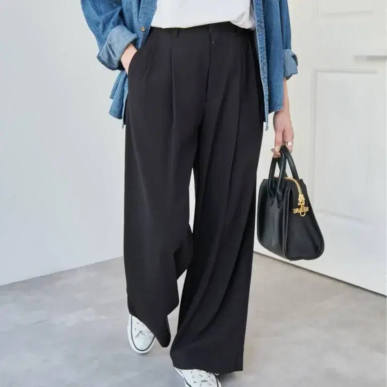 정가 17600엔 실키 드레이프 2턱 와이드 팬츠 36 블랙 여름