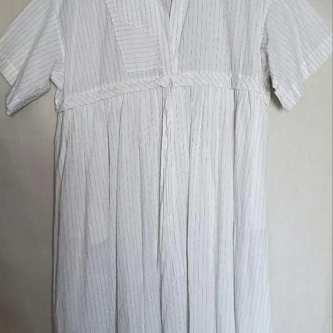D-due 화이트 스트라이프 반팔 셔츠 원피스