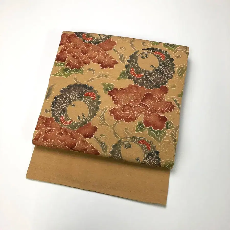 꽃무늬 자수 후쿠로 오비 베이지 계열