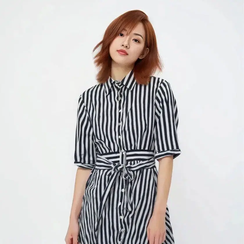 스트라이프 반팔 셔츠 원피스 롱 기장