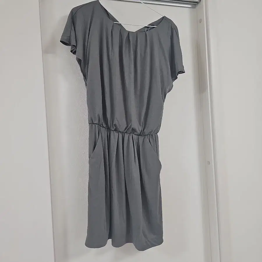 택 포함 그레이 반팔 튜닉 허리밴딩 포켓 부착