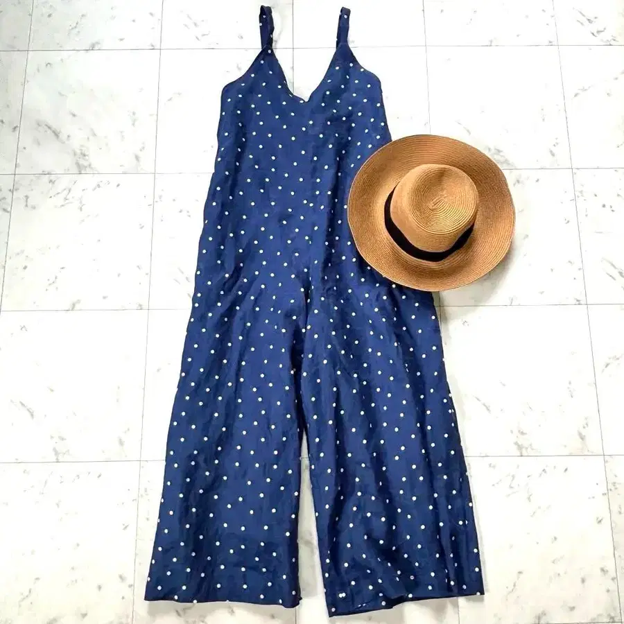 뷰티 앤 유스 도트 무늬 살로펫 린넨 백 리본 세탁 가능 파랑