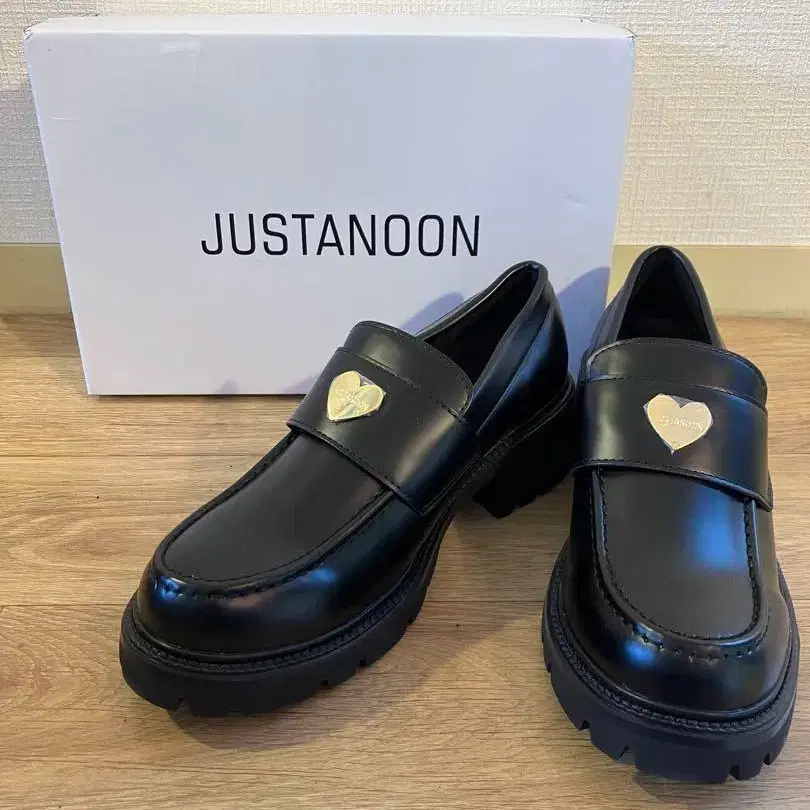 미사용 새상품 JUSTANOON 하트 통굽 로퍼 블랙 M 사이즈