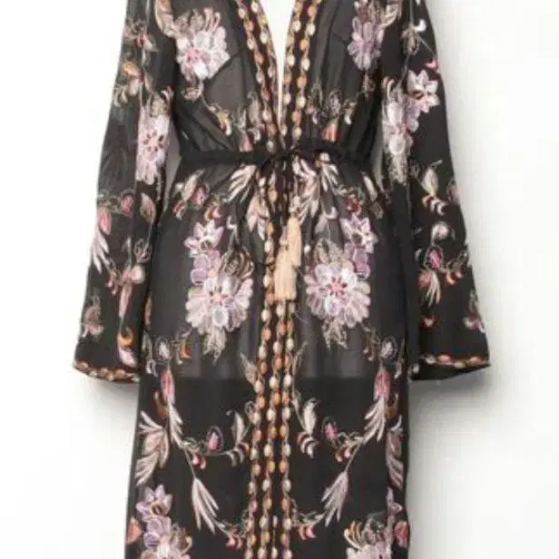 그레이스 콘티넨탈 올 패턴 자수 롱 태슬 가디건