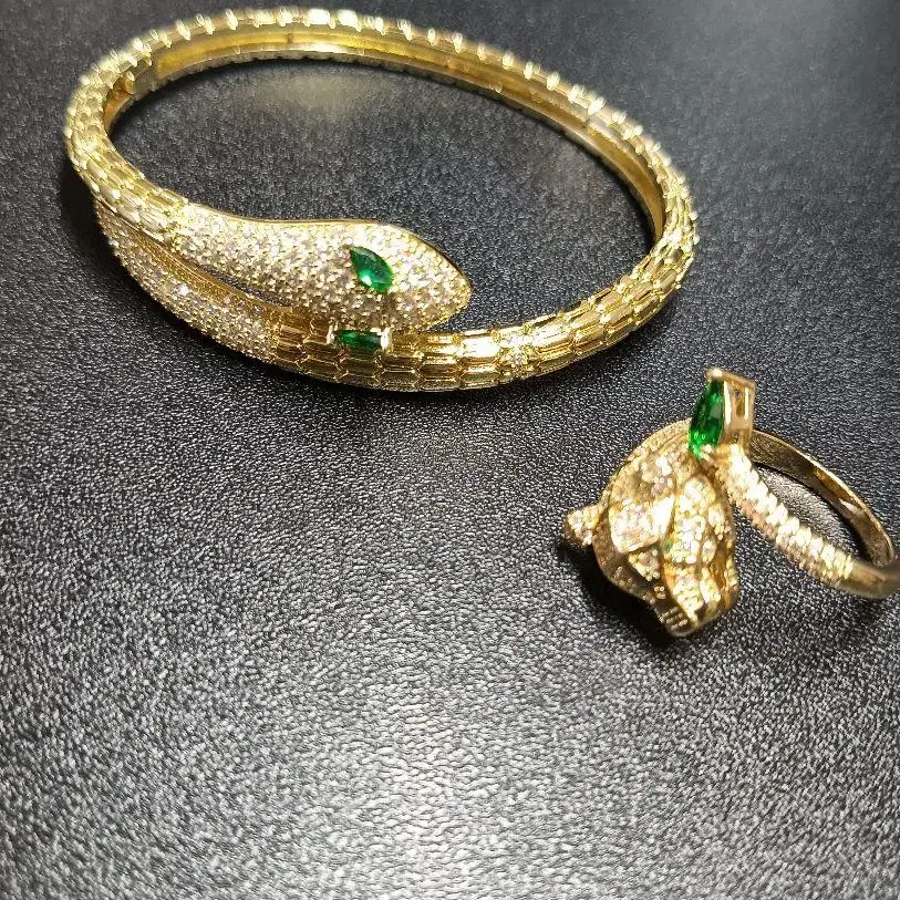 18금 도금 골드 뱀 타이거 자인 뱅글 7호 반지 세트