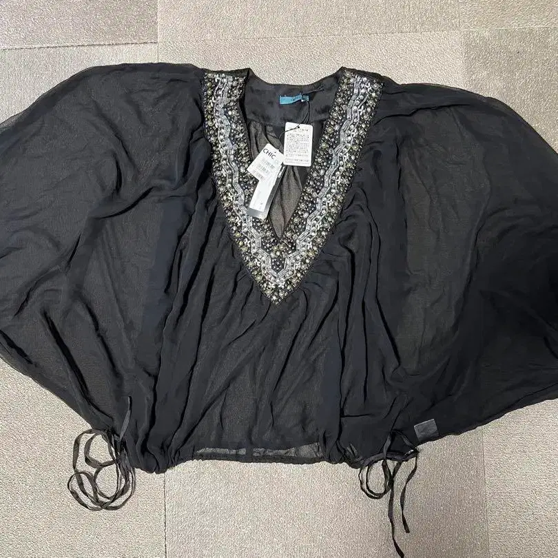 CHIC 시어 비즈 스팽글 블라우스 튜닉 M 사이즈