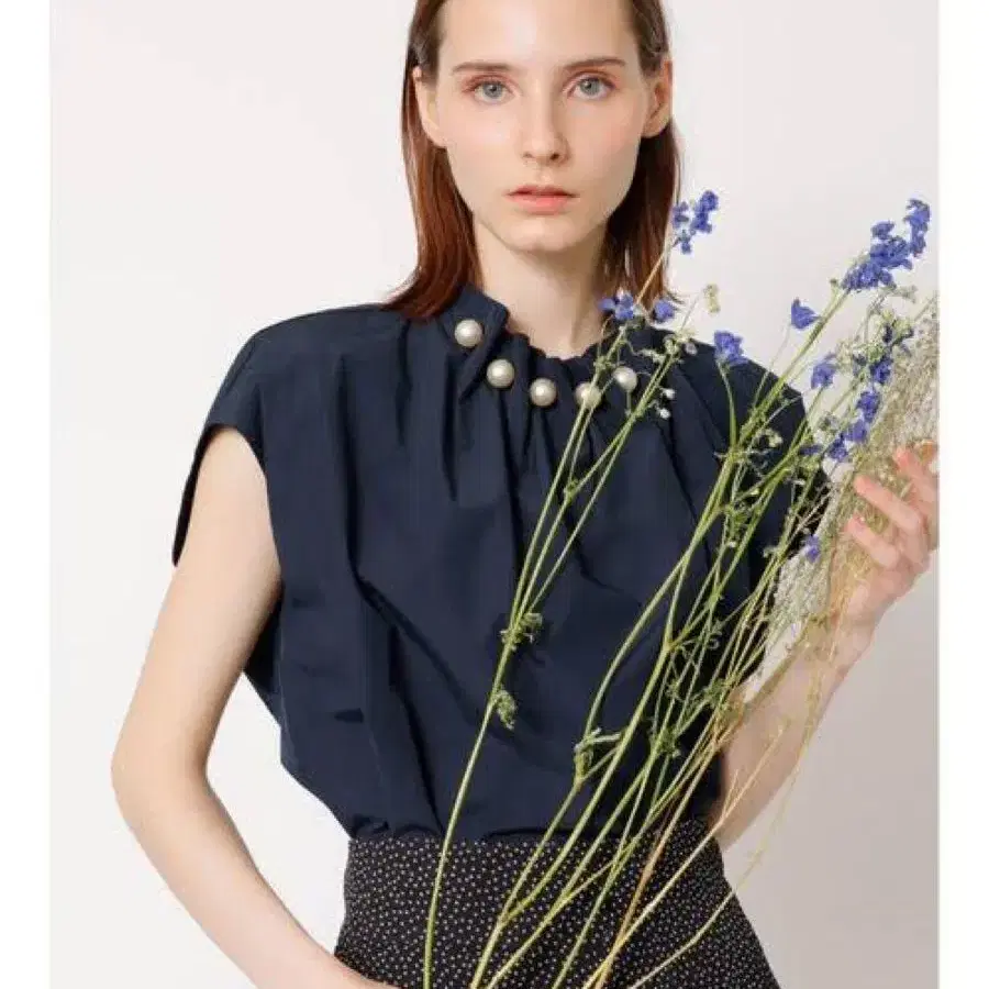 펄 하이넥 슬리브리스 블라우스