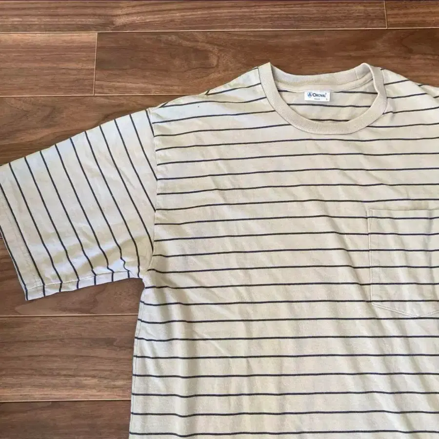 오르치발 수빈 저리 보더 크루넥 티셔츠 가슴 포켓