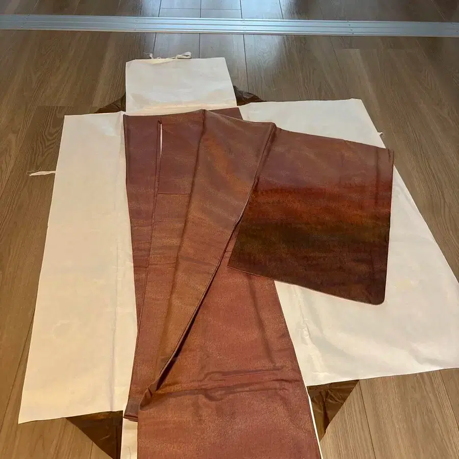 브라운과 빨간색의 그라데이션이 아름다운 오시마 명주 기모노입니다. - 색상: 브라운과 빨간색 그라데이션 방문해 주셔서 감사합니다. 자택 보관 상품이므로 예민하신 분은 삼가 주시기 바랍니다.