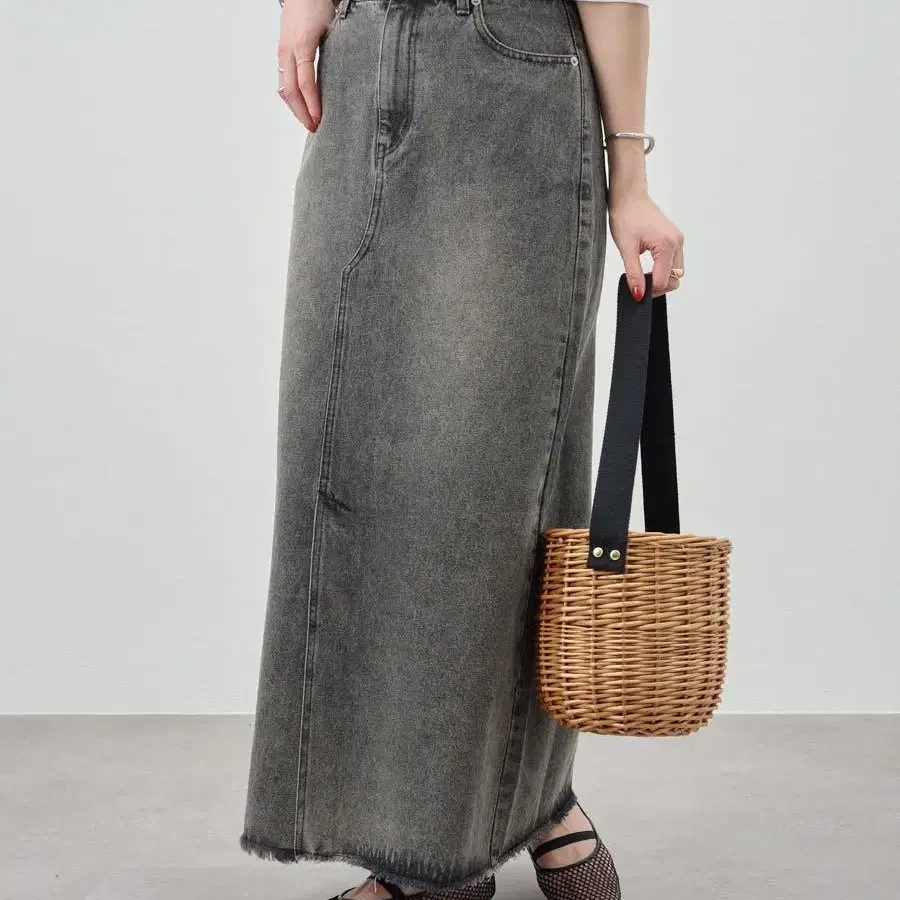 • 그레이 데님풍 롱 스커트 허리밴딩 니코앤드