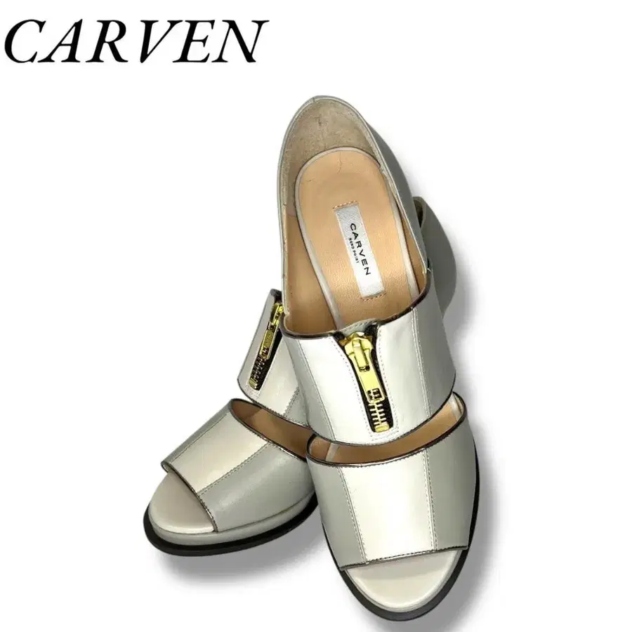 CARVEN 지퍼 오픈토 샌들 가죽 새상품급 깔끔한