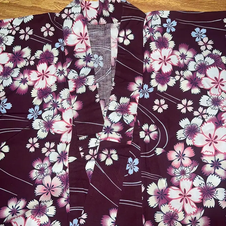 유카타 프리 사이즈 벚꽃 패턴 크림슨 컬러